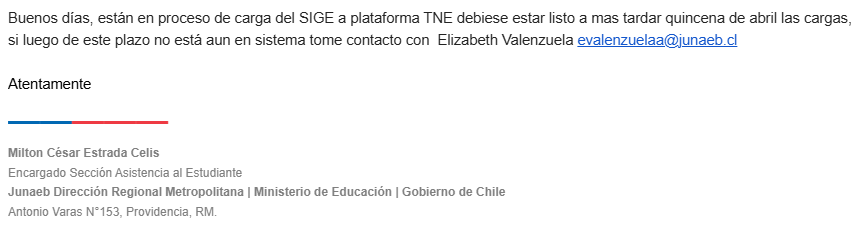 - El proceso depende de la actualización de la plataforma TNE por parte de JUNAEB.